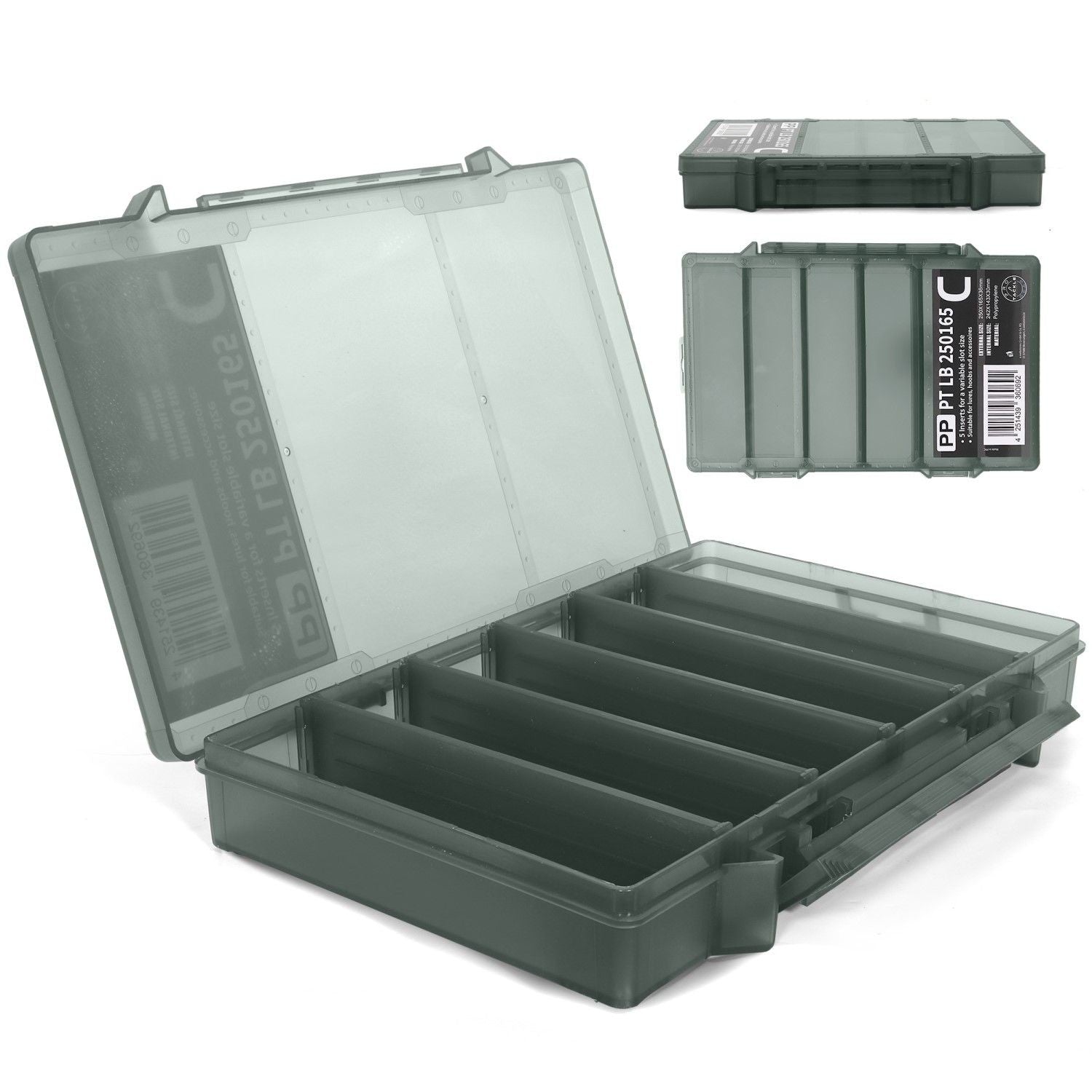 Тази практична и функционална кутия е създадена за организирано съхранение на воблери, пенсили, меки примамки и аксесоари — с подвижни и фиксирани прегради, изработена от удароустойчив пластик.