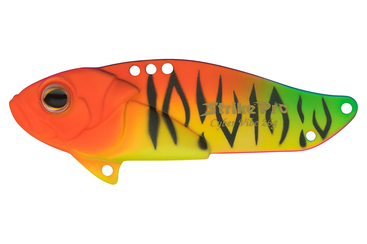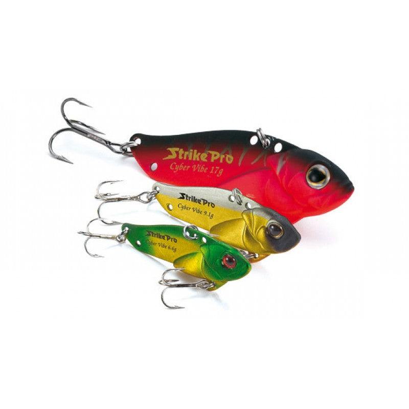 Strike Pro Cyber Vibe JG‑005B е sinking цикада с дължина 4 cm и тегло 6.6 g, изработена от здрава метална сплав. Разполага с три монтажни отвора за различна дълбочина и игра, вградена ратъл камера и две X‑Strong OWNER тройни куки, които осигуряват надеждност при борба с хищниците. При равномерна водене или jig водене създава силни вибрации и отчитащи звуци – ефективна както в солена, така и в сладка вода.