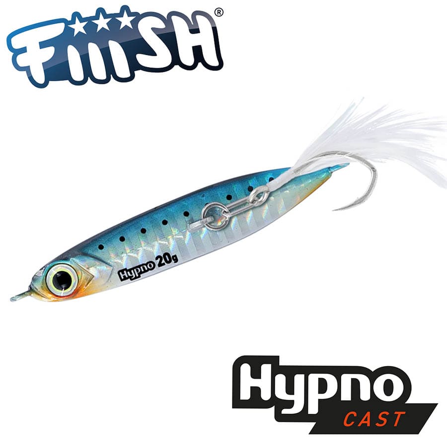 Fiiish Hypno Cast Jig – 30 g / 79 mm е иновативен кастинг джиг със специален дизайн: централно монтирана VMC assist кука и здрав неръждаем стоманен скелет от око до кука. При потапяне той започва да плува незабавно, със “rolling & flashing” действие и лек flutter. Компактен и хидродинамичен, е лесен за далечно замятане, стабилен във въздуха, а при прибиране имитира бягаща плячка – ефективен за морски (seabass, cod, pollock) и сладководни (perch, pike, trout) хищници.
