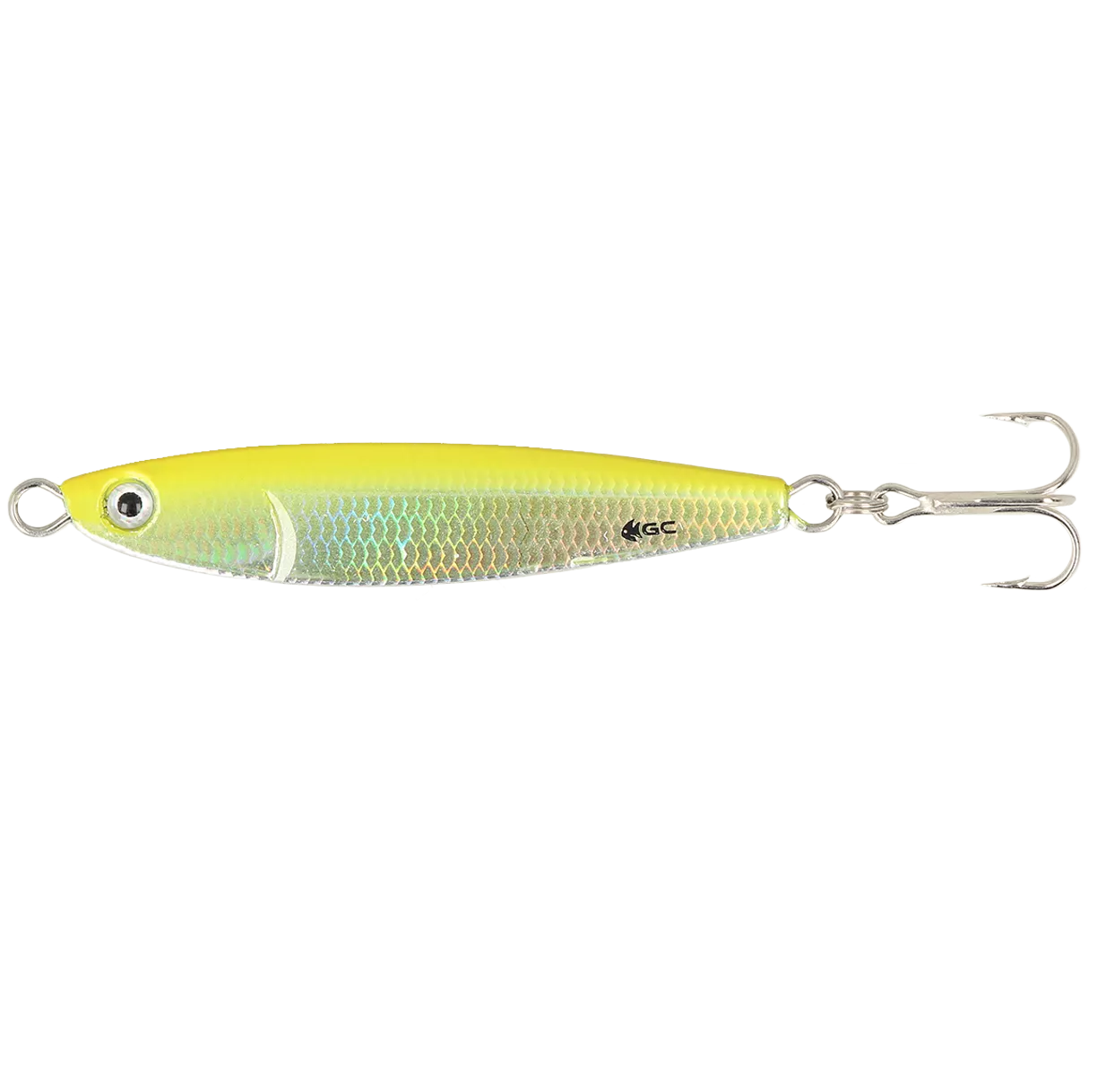 Golden Catch Blaze Metal Jig – 12 g / 53 mm е лек метален джиг с преместен център на тежестта (по-дебела задна част), създавайки характерно действие при паузи. Широкият профил му позволява активна игра при jerk-водене, стресиращо трептене при средна и висока скорост на прибиране и стабилно воблиране при паузи. Оборудван е с Mustad тройна кука № 10 и здрави сигурни халки. Подходящ е за морски хищници (конска скумрия, ставрида, лефер) и сладководни видове (щука, костур, бяла риба, aspius).