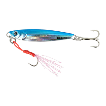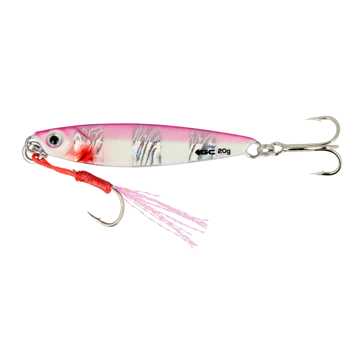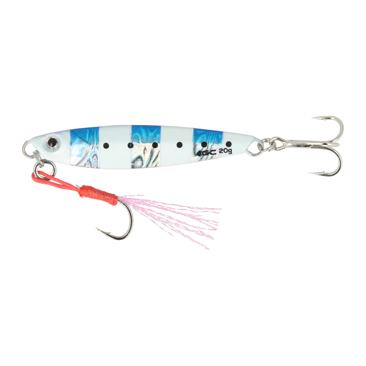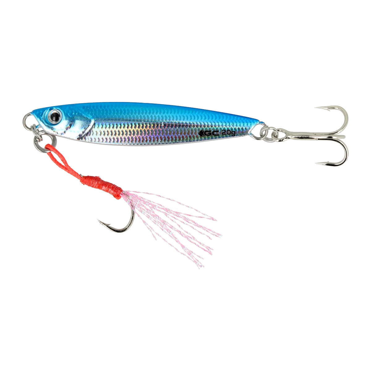 Golden Catch Metal Jig Dasher 20 g (≈ 6.3 cm) е метален джиг с офсетен баланс, оптимизиран за далечни замятания и интензивна игра. При рязко jerk–водене изпълнява агресивни трептения, а при равномерно теглене извършва широки люлки и стабилно jig‑and‑fall поведение. Оборудван с Mustad тройна кука #8 и assist кука #1, свързани със здрави forged split‑ring конектори. Подходящ е за морски и пресноводни хищници като распер, гарфиш, сафрид и лаврак.