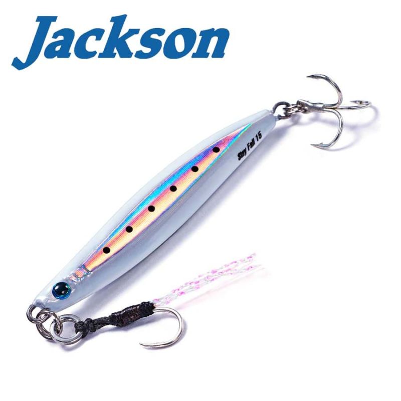 Jackson Metal Effect Stay Fall 15 g (56 mm) е metal jig от Stay Fall серията, разработен специално за "jerking" техника. С уникална вдлъбнатина от едната страна, той задържа естествено играта по време на пауза и имитира “падане като лист”, докато се люлее. Центърът на тежестта е леко изнесен назад за максимален кастинг. Оборудван е с предна assist кука № 8 и задна тройна кука № 10 – готов за риболов веднага след закупуване.