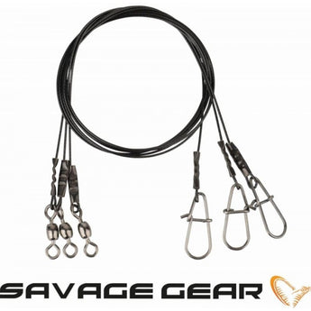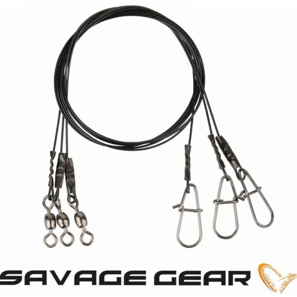 Savage Gear Black7 Trace е изключително здрав метален повод, изработен от 7 нишков тел. Подходящ за риболов на щука и други хищници, снабден със здрав вирбел и Needle Snap закопчалка.Характеристики