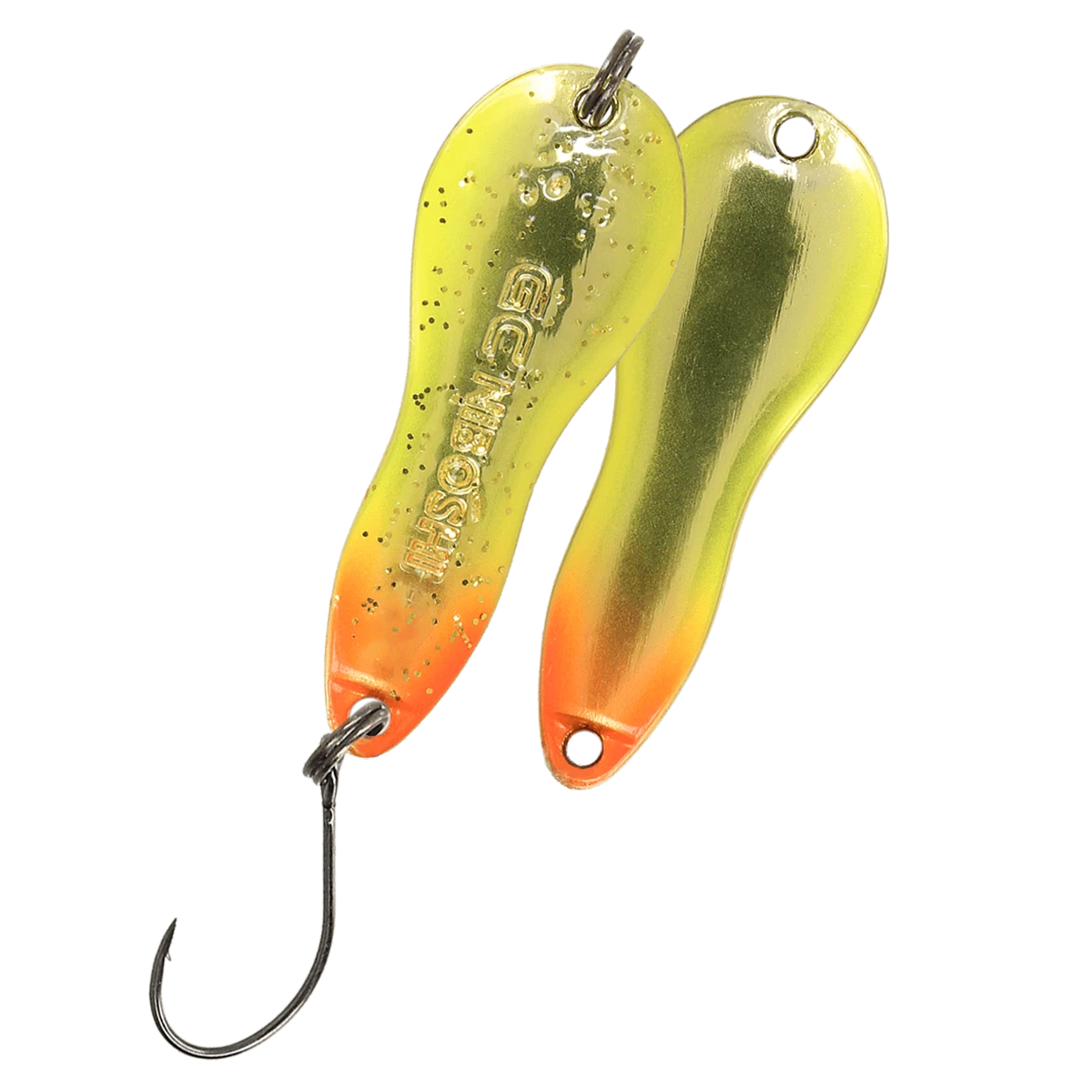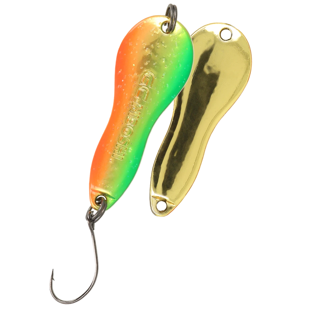 Golden Catch Niboshi Trout 3g – 33 mm е ултралека японска/украинска клатушка, създадена за риболов на пъстърва, чуб, костур и щука в спокойни водоеми и умерени течения. С тегло 3 g и дължина 33 mm, примамката осигурява далечен и точен кастинг, а осцилаторното движение адаптира играта при различни скорости на обиране. Оборудвана с остър, бородчат еднокука, тя е готова за директна употреба и ефективна при всяка водна ситуация.