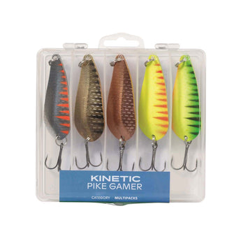 Kinetic Pike Gamer (комплект 5 бр., 21 g) е комплект от пет клатушки / spoon с тегло 21 g всяка, изработени с безоловна масивна пластина и доставени в прозрачна кутия с 5 отделения.