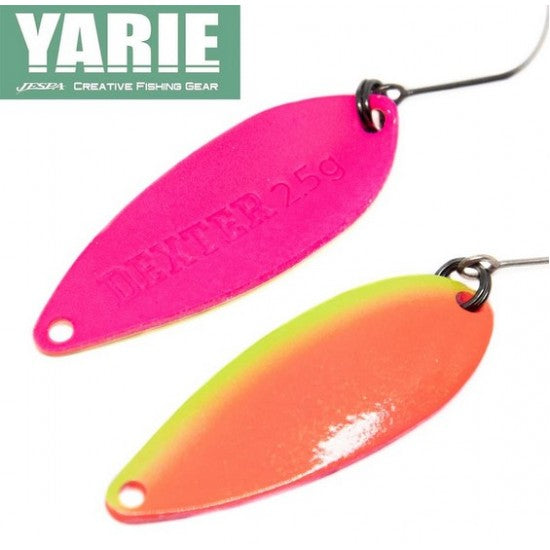 Yarie Dexter 2.5g е универсална клатушка за ултралайт и лайт спининг, разработена за риболов на пъстърва и други хищници в спокойни или слабо течащи води. Със своето тегло от 2.5 грама и класически извит профил, Dexter съчетава отличен кастинг с живо и колебливо движение при равномерно водене или пропадане. Подходяща е както за Trout Area риболов, така и за улов на диви екземпляри в реки и язовири.
