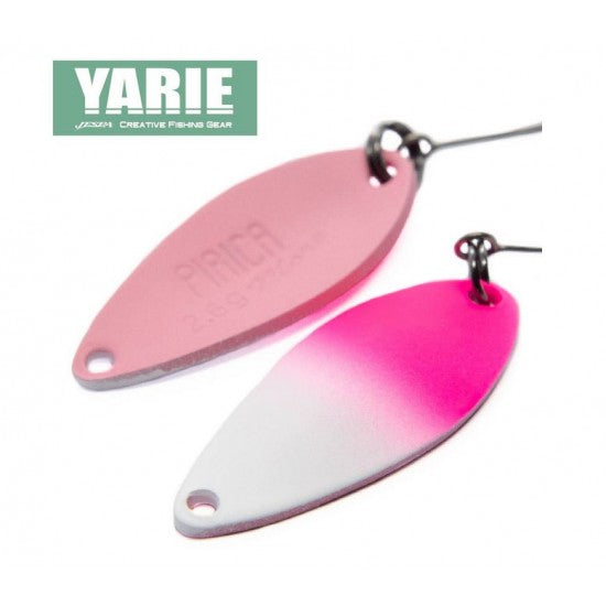 Yarie Pirica More 2.6g е високоефективна японска клатушка, предназначена за Trout Area риболов и ултралайт спининг в условия с по-голяма дистанция или активна риба. С тегло от 2.6 грама и специфичен извит профил, Pirica More предлага стабилно поведение при различни скорости на водене и изразено wobbling движение, което провокира атаки дори при кратки паузи. Примамката е предпочитан избор за спортен риболов с бърза реакция и контрол.