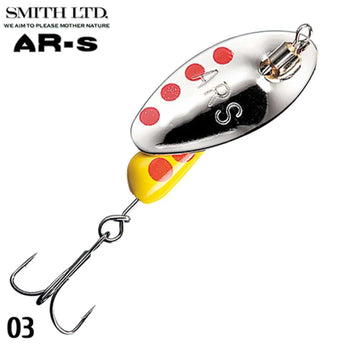 Smith AR-S 4.5g е висококачествена японска въртяща блесна, създадена за улов на активни хищници в течащи води. Отличава се с уникален дизайн на листото с овална форма и централна ос, която осигурява моментално завъртане още при падане във водата. AR-S се води стабилно дори при силно течение, без да се накланя или излиза от траектория. Металното тяло и компактната форма позволяват прецизни и далечни замятания. Идеална за пъстърва, кефал, косур и распер.
