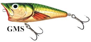 Salmo Pop P6 е повърхностна примамка (попер), създадена за зрелищен риболов на щука, костур и бяла риба. Отличава се с класически pop-звук, пръски и бълбукаща акция, която провокира атаки дори от пасивни хищници.Характеристики