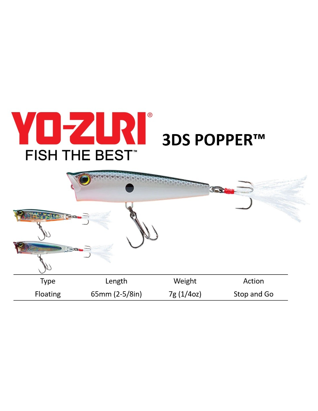 Yo-Zuri 3DS Popper F65 – компактна повърхностна примамка с шумна акция и агресивна игра за улов на хищници.