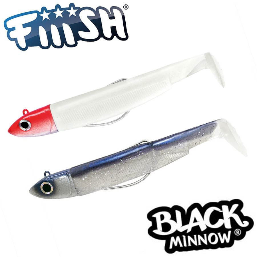 Fiiish Black Minnow Combo №1 - 7 cm, 6g - включва два готови монтажа, в цветове Green/Orange - Pink Fluo; Kaki - Kaki Glitter, Red/White - Blue Glitter и Sleepy Green - Pink Fluo - UV. Състои се от 2 бр. глави 6 гр., 2 бр. куки и 2 тела. Съдържанието е показано на снимката в ляво. Размерът е 7 см. За да се възползвате от други цветове, можете да направите комбинация от отделно предлаганите куки, глави и тела. Важно е да комбинирате един и същ номер. Подходящ за риболов на пъстърва,кефал, джиг риболов на костур, бяла риба и щука.
