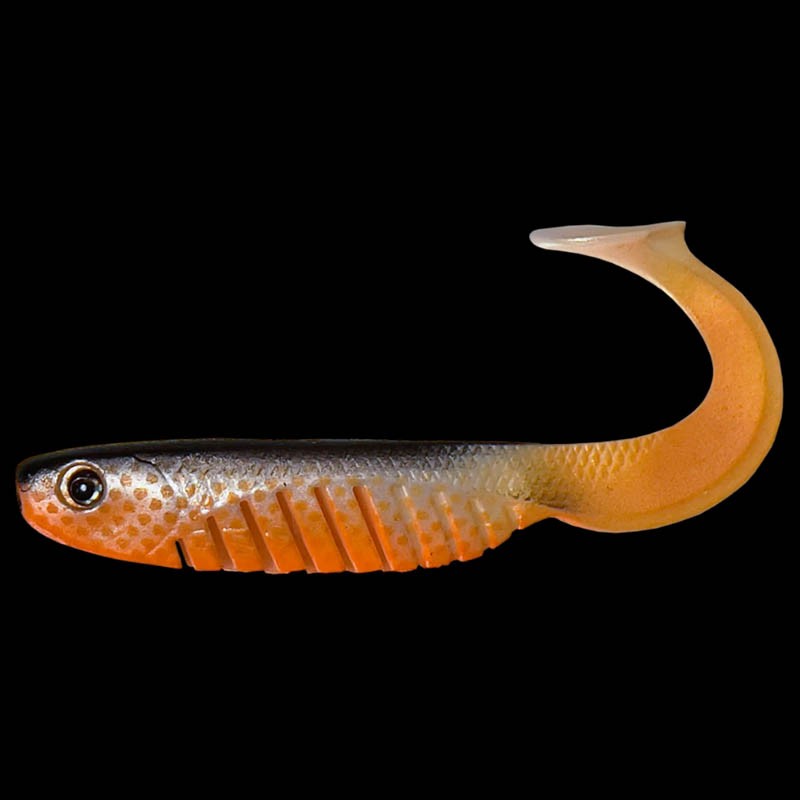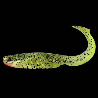 Мек силикон с отлична подвижност и оребрена структура, която създава турбуленции и визуални ефекти. Подходяща за офсетни куки и джиг монтажи.