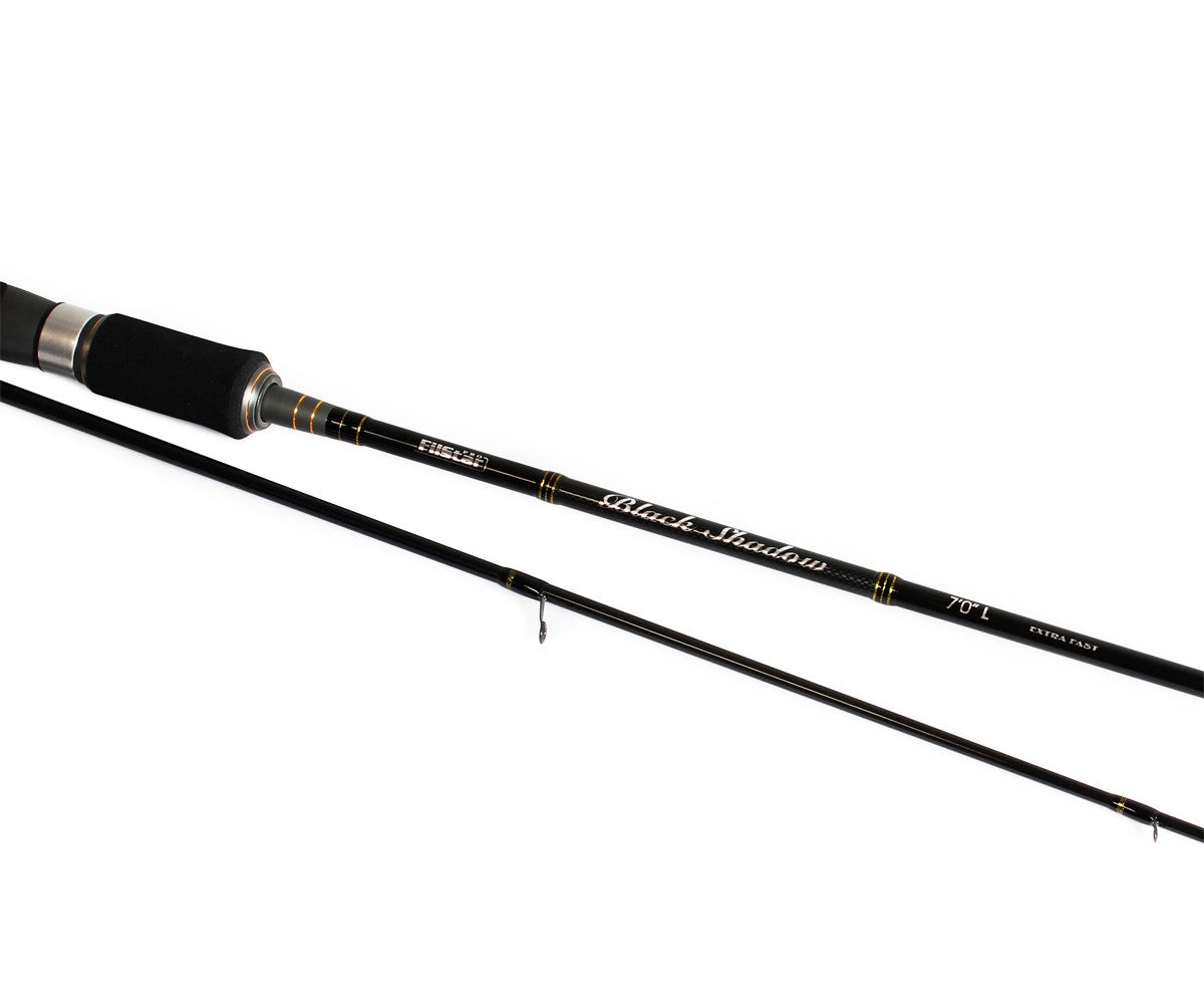 FilStar Black Shadow е висок клас серия спининг въдици с тънка, бърза бланка и огромен диапазон от акции – от 2–7 g ултралайт модели до мощни 20–50 g пръчки. Комбинацията от Japan W-Carbon бланка, Fuji K type водачи и Fuji макародържач дава чувствителност при водене на примамката и сериозен резерв от мощност при вадене на по-големи риби.