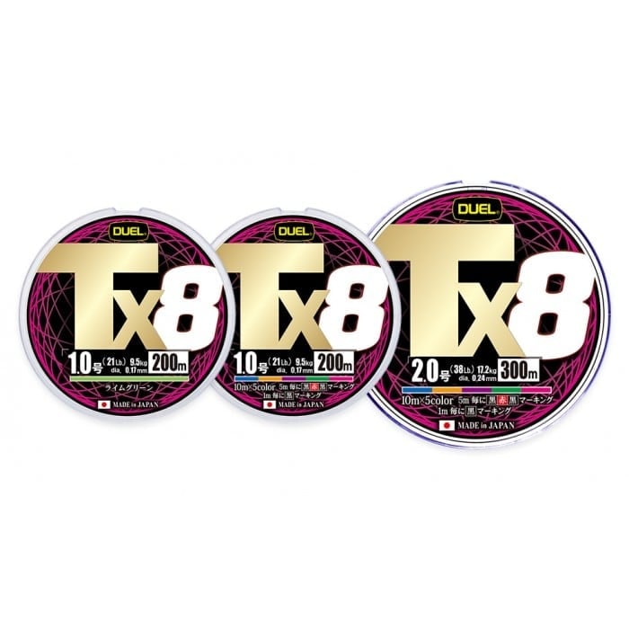 DUEL TX8 е иновативно японско PE влакно с 8-нишкова структура, осигуряващо висока здравина, отлична видимост и контрол при кастинг. Оцветено на всеки 10 м в различен цвят за точно отчитане на дистанцията.