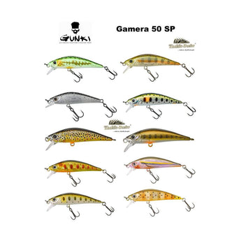 Gunki Gamera 50SP е висококачествен суспендиращ воблер, предназначен за риболов на хищни риби в плитки води. Със своята дължина от 50 мм и тегло от 2.3 г, този воблер предлага отлична стабилност и контрол при различни техники на водене, включително равномерно прибиране и туичинг. Благодарение на своята форма и баланс, Gamera 50SP осигурява реалистично движение, което привлича вниманието на рибите.