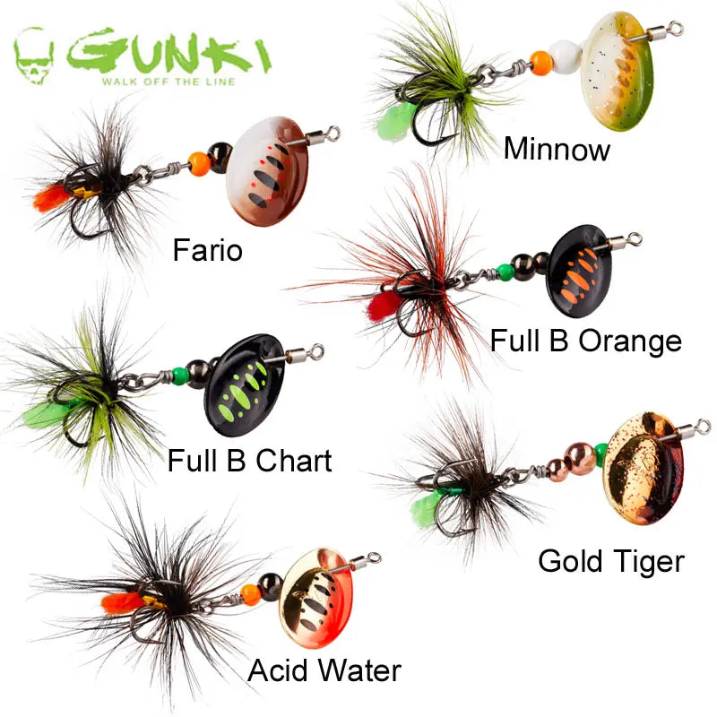 Gunki D.O.T.S. Fly № 0 – 2.25 g е ултралека инлайн спинър блесна от серията D.O.T.S., проектирана за риболов в потоци и малки до средни реки. С “nail‑blade” пластина, която се активира мигновено при контакт с водата и поддържа стабилно въртене при различни проводки. Fly версията добавя перушина и teaser материал към тройката, повишаващи визуалния стимул и намаляващи заплитането при проход през водна растителност.