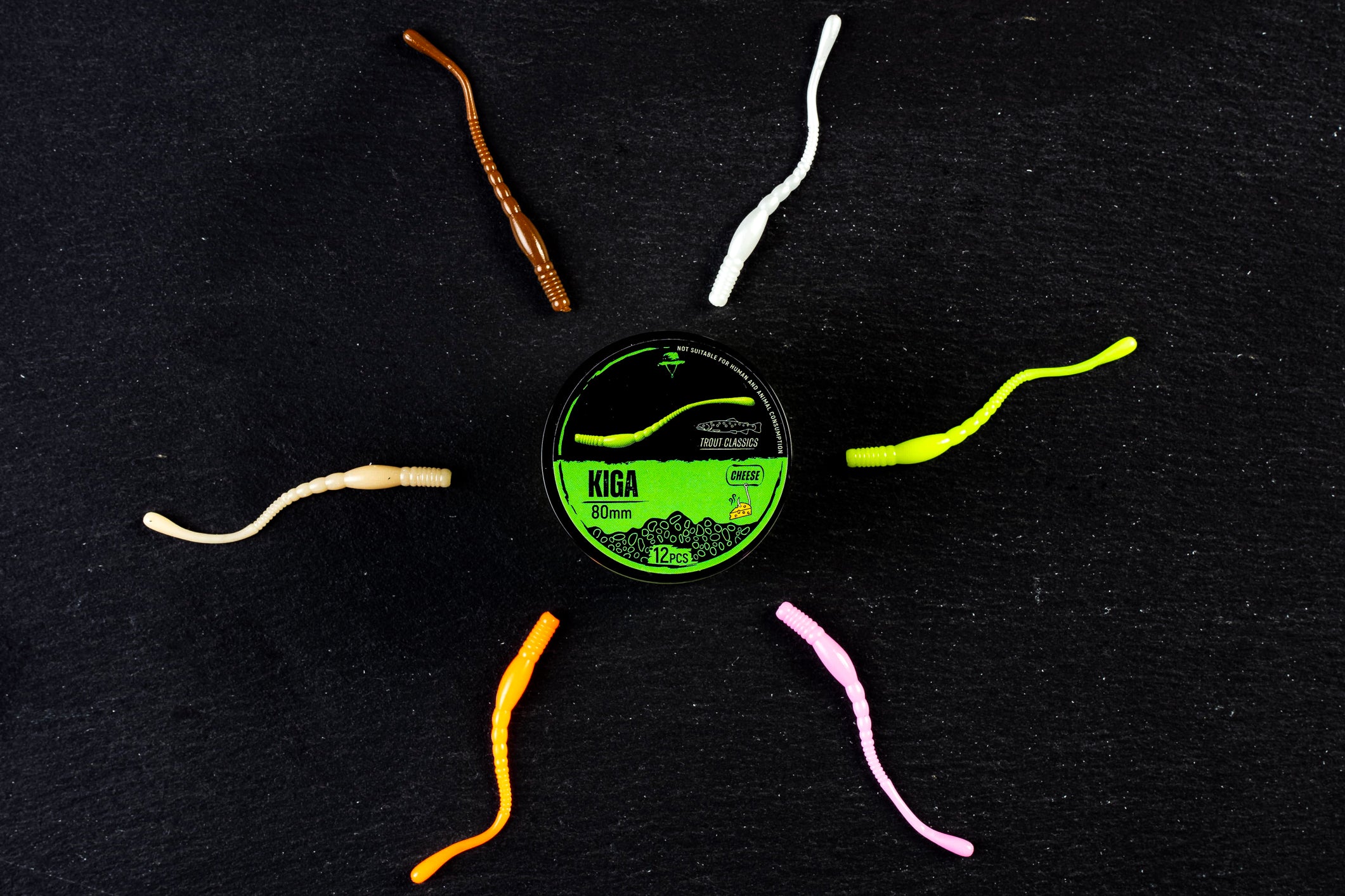 Силиконовата примамка Linkor Lures Kiga Slim Worm 70 mm е универсален „червей“, създаден да имитира червен червей (Redworm) и да провокира дори предпазливи хищници. Производителят посочва, че моделът е изключително универсален и може да се използва както с дънен монтаж, така и без утежнение. Примамката е плаваща и ароматизирана, а за размер 70 mm се предлага във вкусове Сьомга или Сирене (според варианта).
