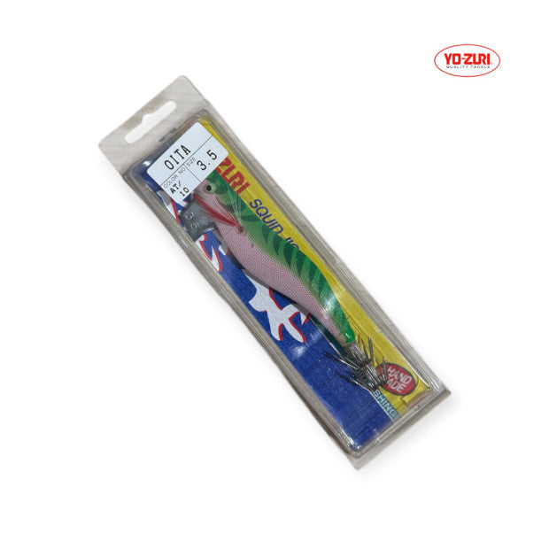 YO-ZURI Oita 3.5 е висококачествена калмарета („squid jig“) с размер #3.5, предназначен за лов на калмари. Тялото е обвито с текстилна материя, оборудвано с двойни кош - куки (basket hooks) и ярки флуо очи, които подобряват видимостта и провокират атаката. Примамката е балансирана за стабилно потъване и лесно маневриране чрез влачене и „скокове“, което я прави отличен избор както за крайбрежен риболов, така и от лодка.